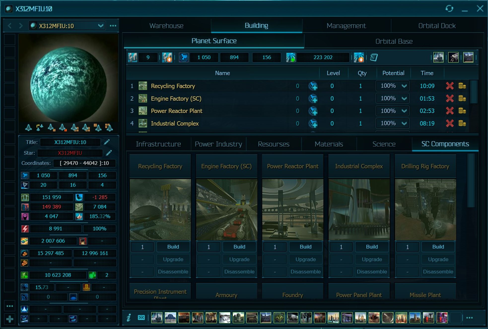 As mentioned earlier, the economy in this Universe is very complex, which makes the development process more interesting. As in most games, there are no 3-4 types of resources: 4 types of fuel for spaceships and power plants, 19 types of mined resources, from which 13 types of materials are produced! Most of the resources are mined on planets and asteroids. However, there are unique resources that are present on asteroids only or are produced at Orbital stations. For mining on asteroids, you need to build a mining fleet. This requires additional research - an Orbital Station with a Command Center, Dock, and Hangar. By the way, your first planet and its Orbital Station are inviolable as well as all fleets located in its orbit. This is a great way to save spaceships without the need for constant space travel.
