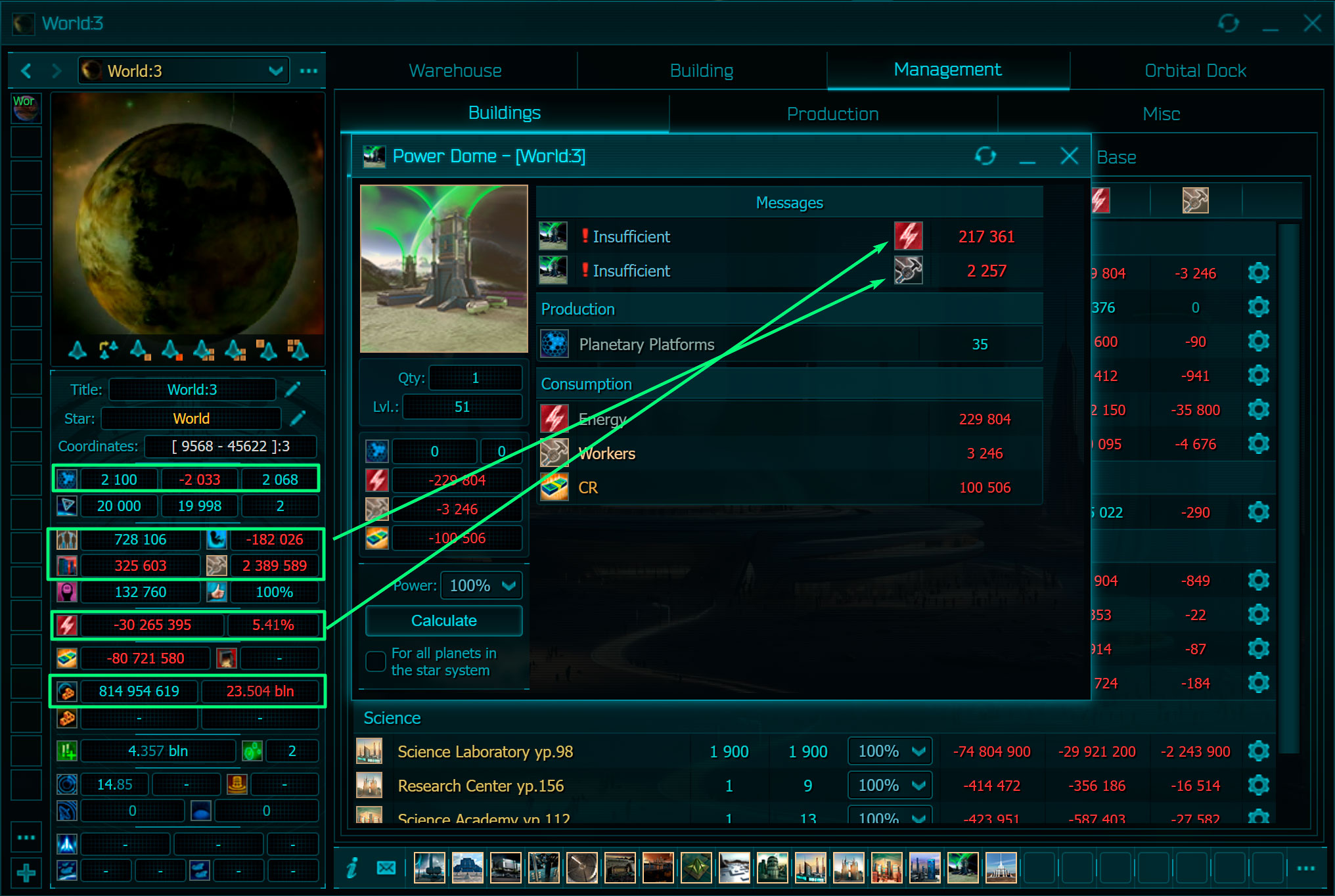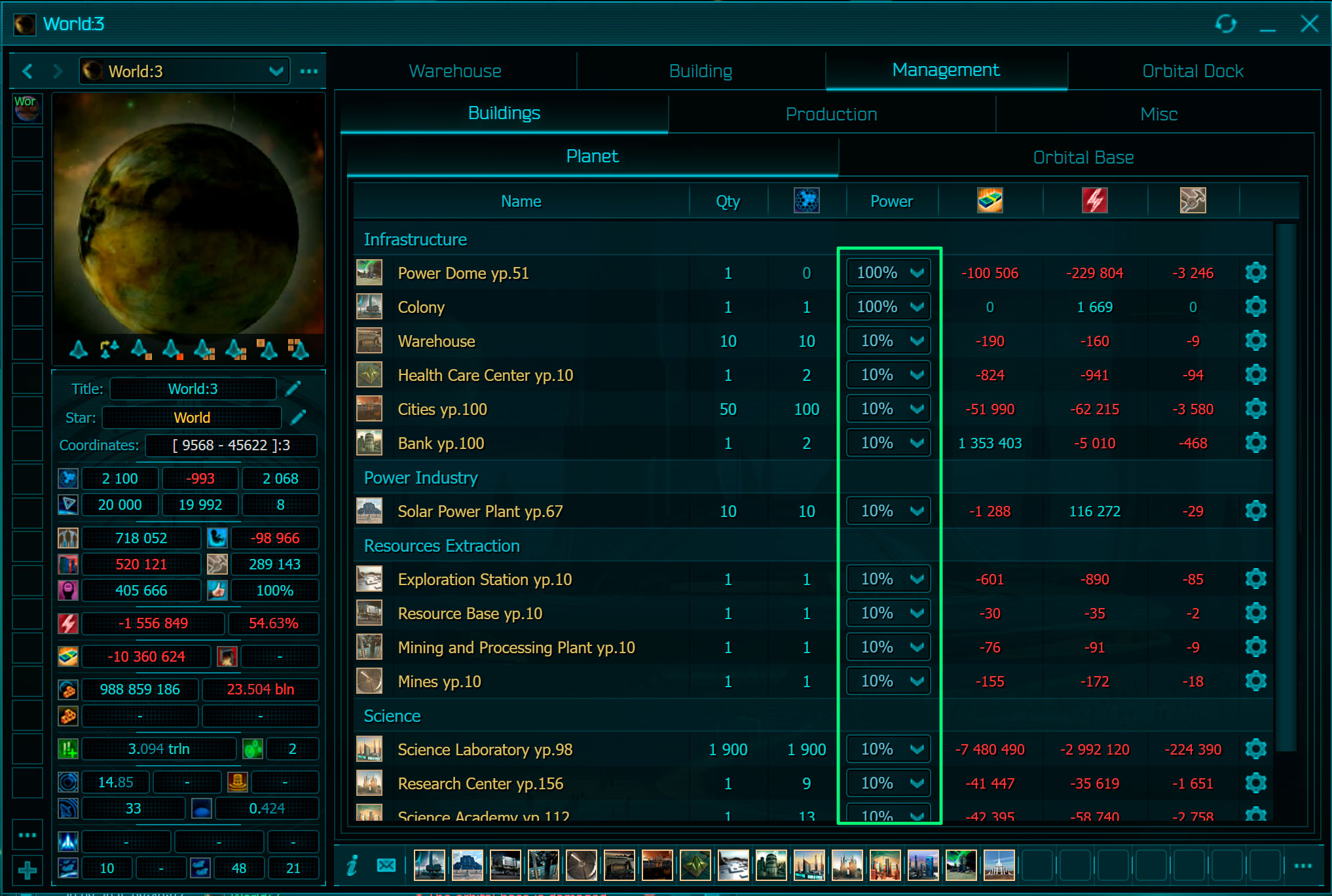 Finally, about science. Research is not limited by levels and does not require the consumption of materials. All that is needed are scientific buildings, modestly consuming energy, and loans for their maintenance. Buildings generate scientific potential and add the number of queues that contribute your empire. Research is not tied to the resources of a single planet, and this is a great advantage. The same is true for the design potential generated by the Construction Office, which is required for the spaceships’ design. The third potential is archaeological. It depends on the level of the planetary Archaeological Center in which a particular artifact is being researched.