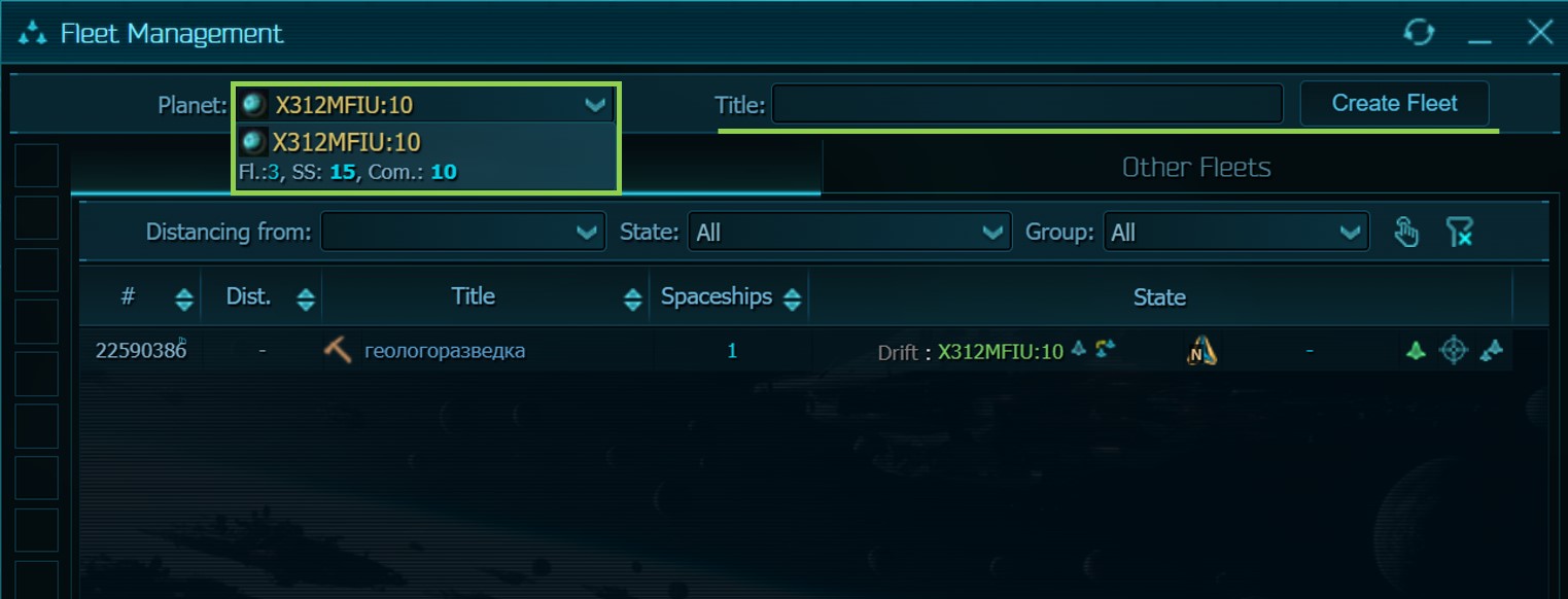 There is a black hole in the center of each galaxy. With the presence of special equipment on board the ships of the fleet (gravity calculator), fleets can overcome enormous distances between different galaxies in one jump. In each galaxy, at the center, a black hole, there is always a certain number of asteroid fields that have the property of constantly appearing (but only as the previously appeared ones are fully developed).